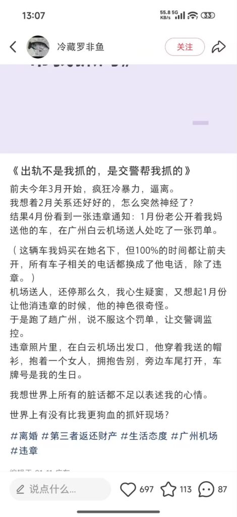 出轨被发现的原因,还是因为送小三去机场违规吃了交通罚单,聪明的女主立马就想到了问题所在,跑到广州事发地调取监控,才发现了丈夫的秘密